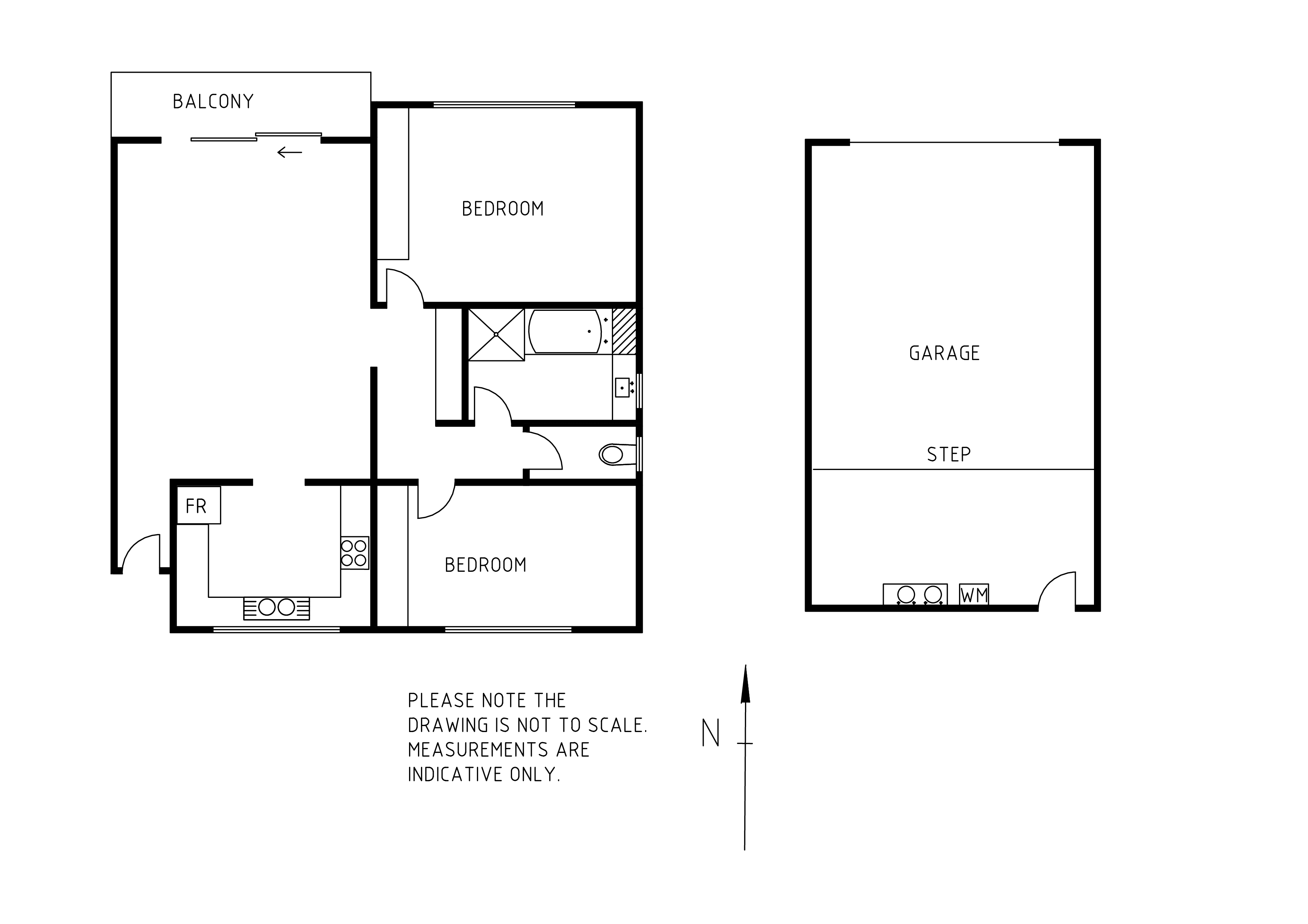 * 2 bedrooms - both with built-in cupboards