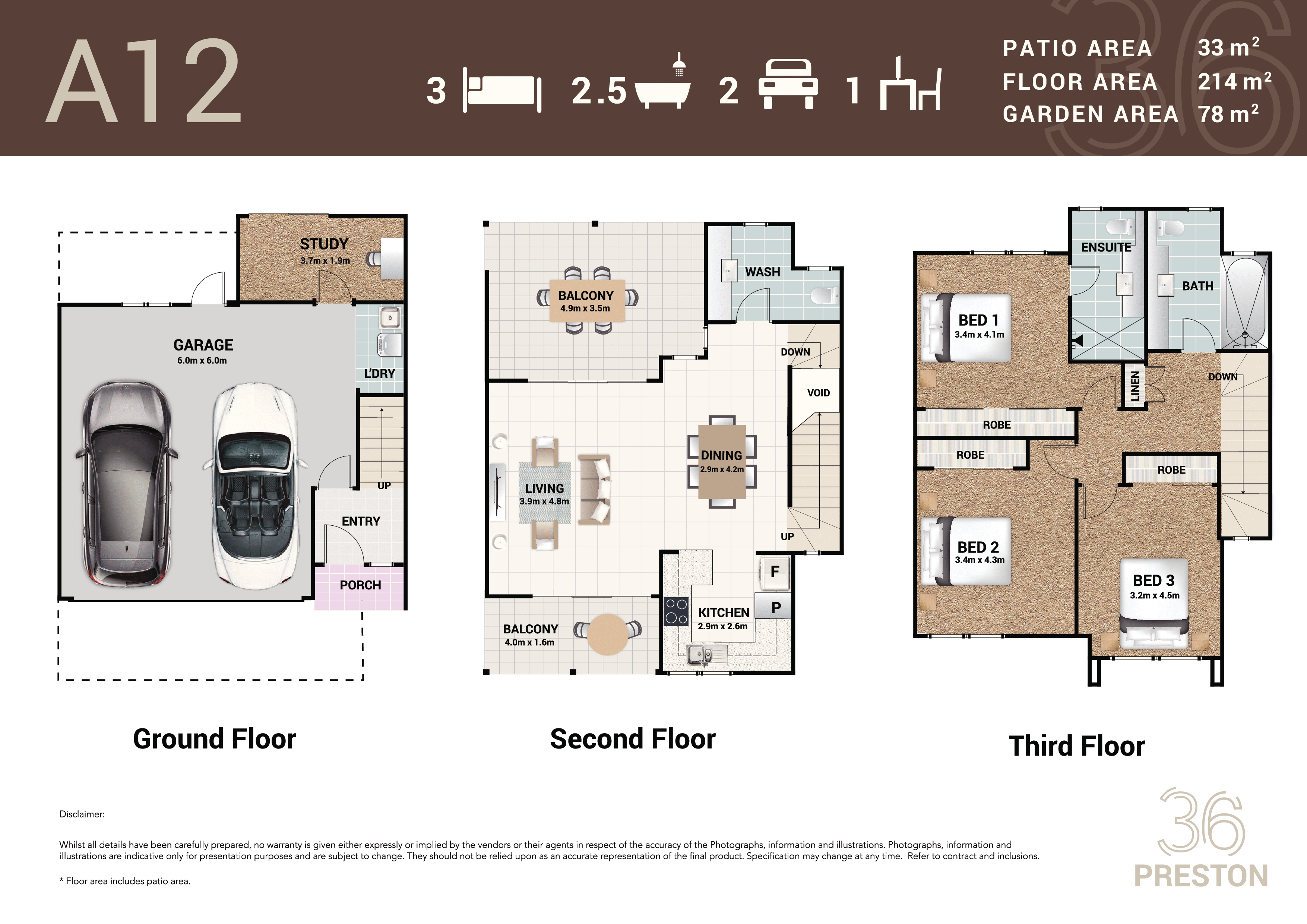 It offers 3 Large Bedrooms, Main with walk through robe to ensuite, Two Bathrooms plus powder room (3rd toilet) on the living level, Two Covered Balconies, kitchen, dining and living areas and full sized double lock up garage with internal access and study or storage room.