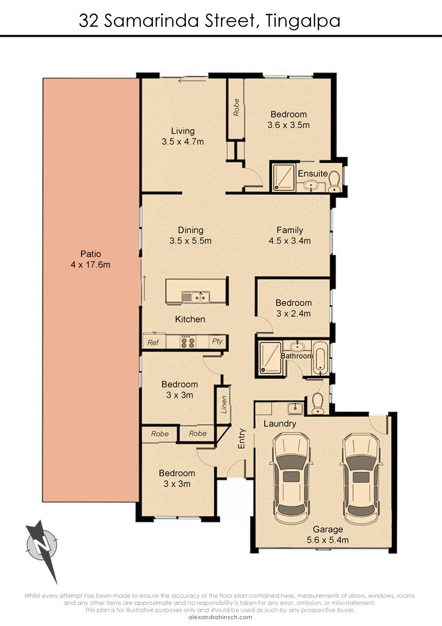 - 3 additional spacious bedrooms, 2 with floor to ceiling robes