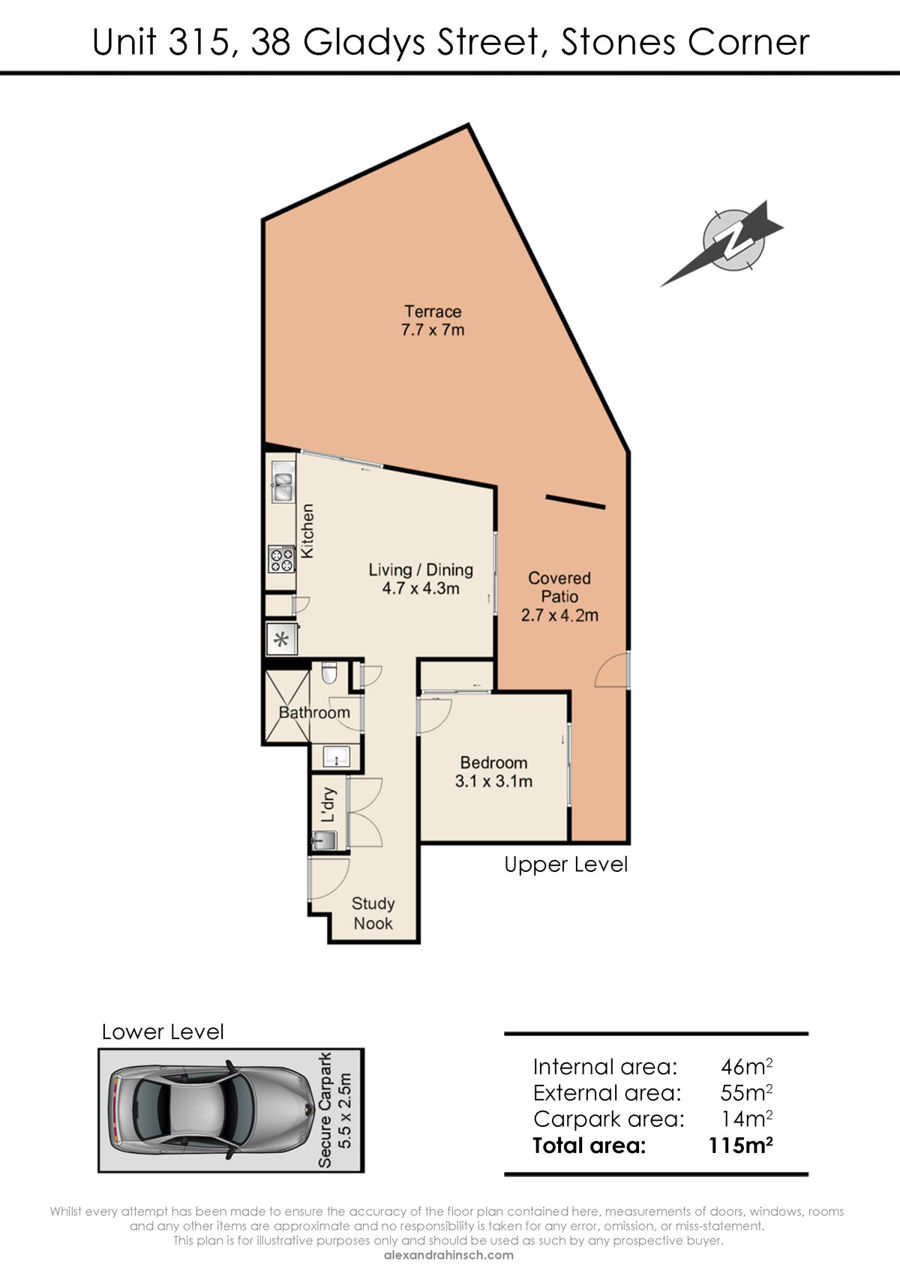 - Well designed to take advantage of the prized corner position with seamless flow to a shady covered patio to one side and expansive terrace on the other (total 55m2)