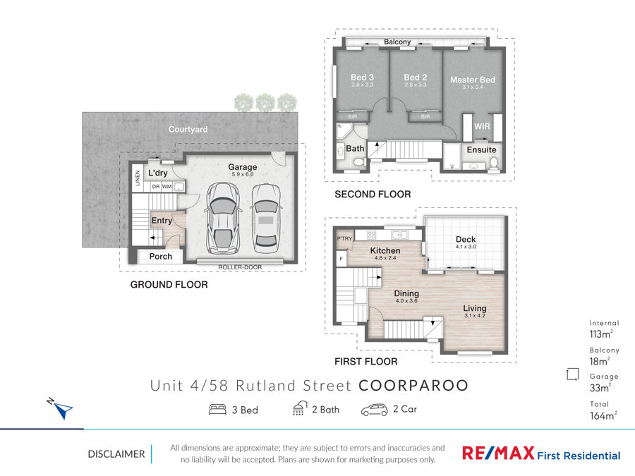 * 3 bedrooms, all with robes, master with en-suite & W.I.R