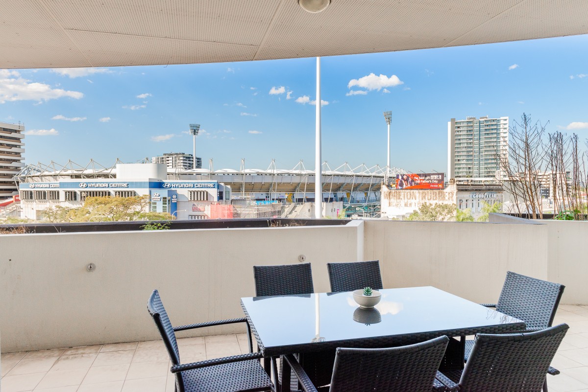 Located in the Sought-after Tower 1 of the GABBA Central apartments is this Furnished 3rd story apartment. Situated on the corner, and offering a generous internal living area, this apartment also boasts a huge wrap around balcony with views of the GABBA. With an unbeatable position, being a stone's throw from popular restaurants, bars, cafe's & shops.